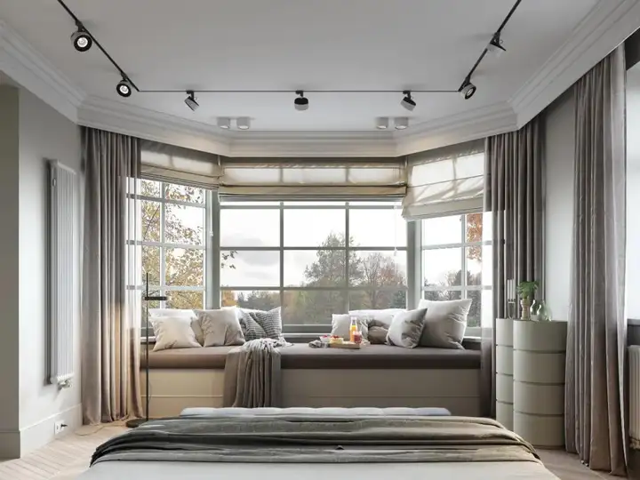 飘窗作为休闲区,一定要考虑的问题。北方的小伙伴最好选择,。如果飘窗在卧室,要选择的,保证睡眠质量。