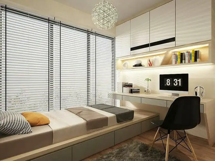 飘窗台面加高做成书桌,适合的人。